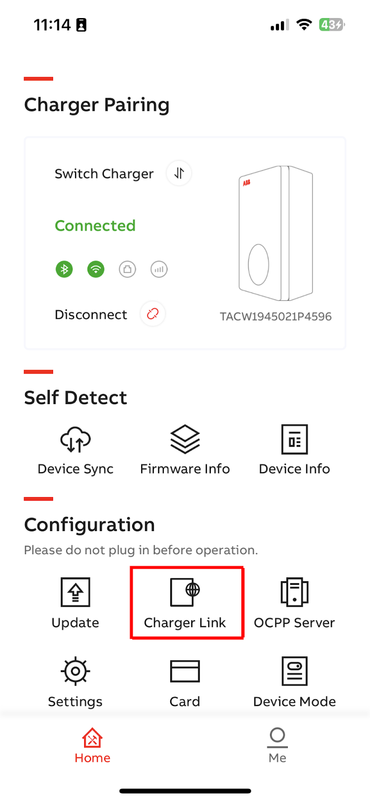 - The charger will reboot, and you will be returned to the Charger Pairing page. Select Reconnect and then Charger Link to enter the Wi-Fi credentials