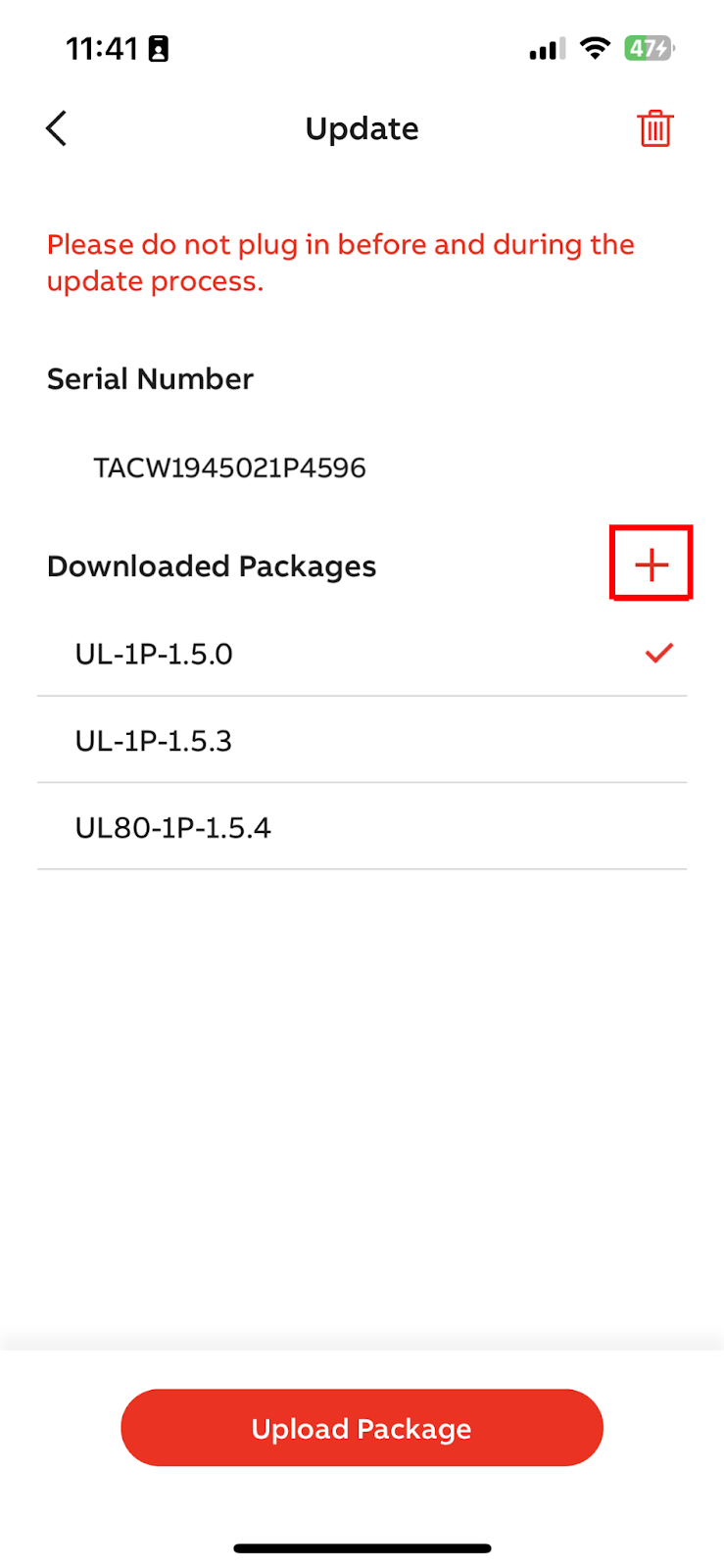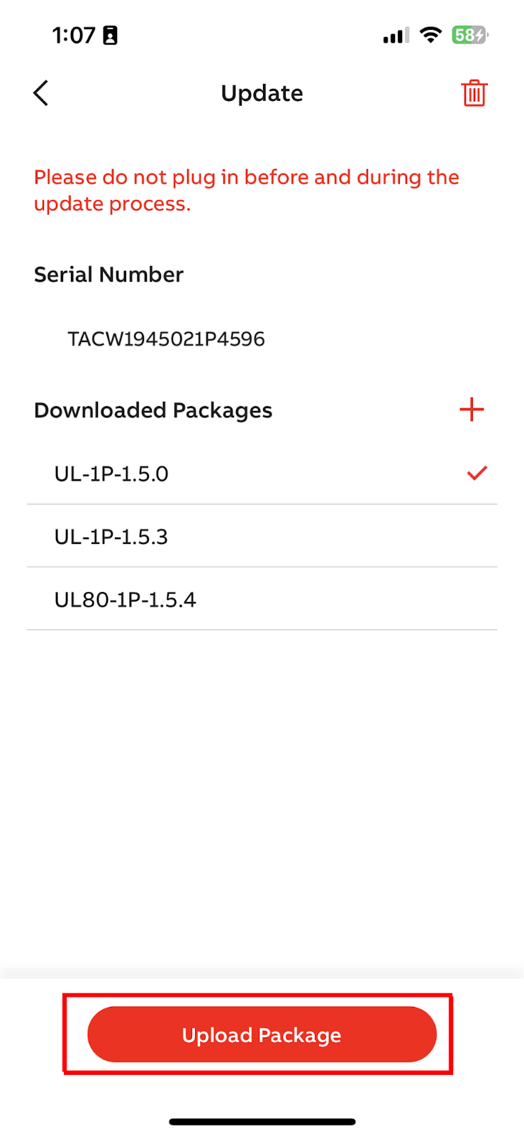 - Select the latest from the list (if there is no entry, your charger is up to date)