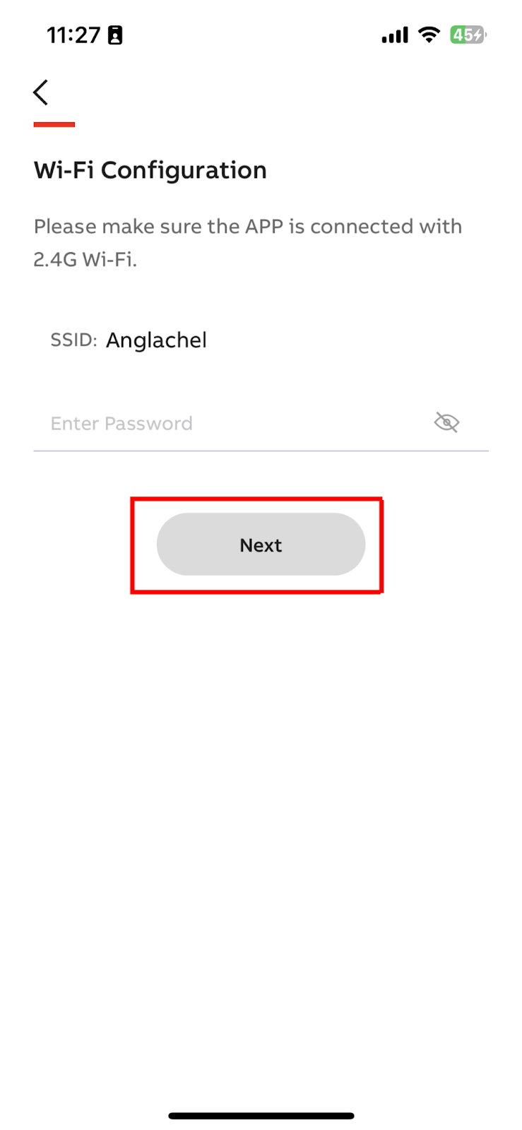 Note: On iOS, the SSID is copied from the Wi-Fi network that the phone is connected to. To use a different network, you will need to connect the phone to the intended Wi-Fi network - Enter the Password