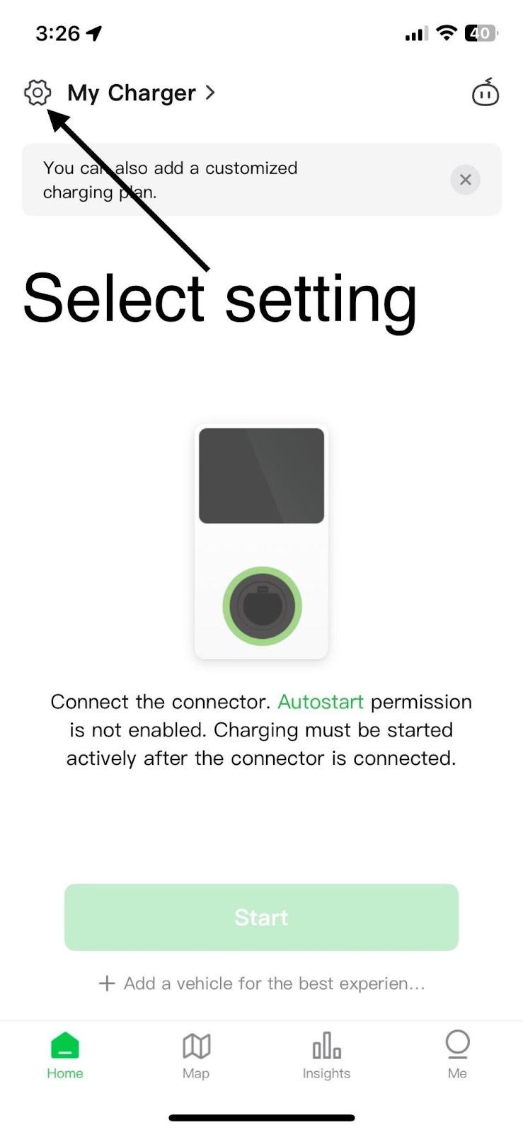 - Go to your Autel Charge App home page.