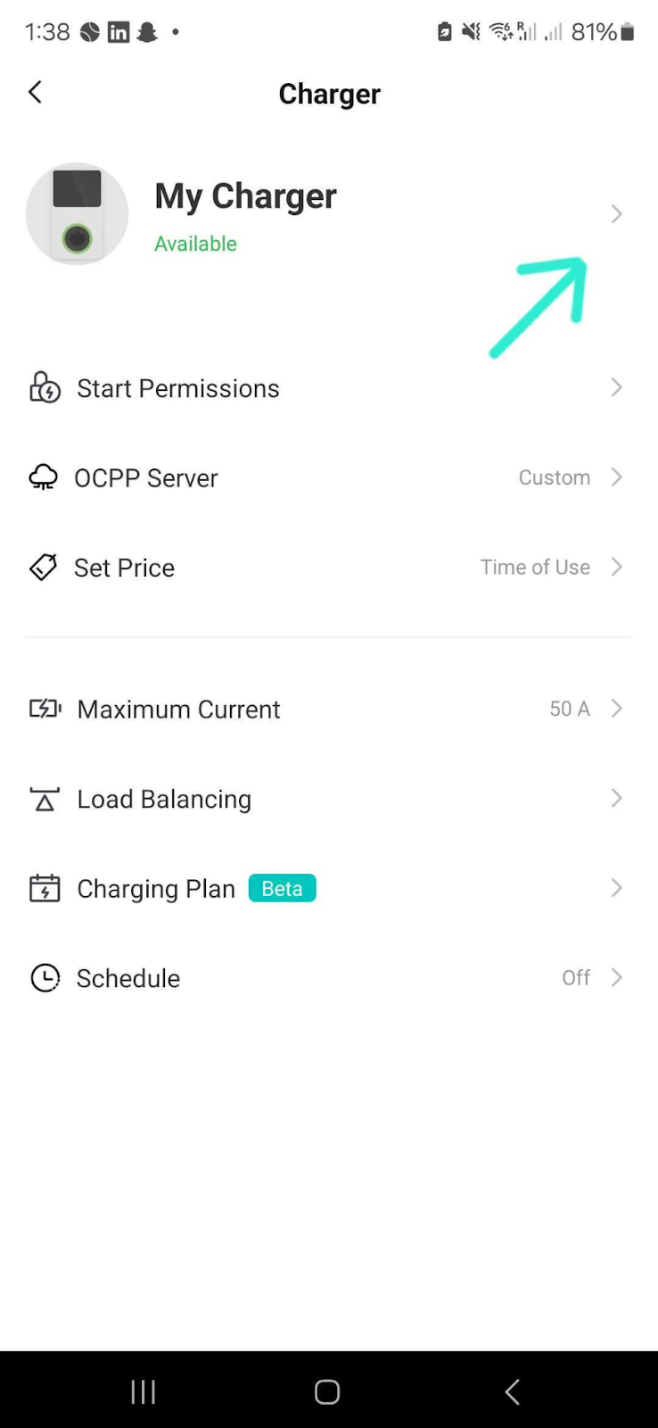 - Select the arrow next to “My Charger”