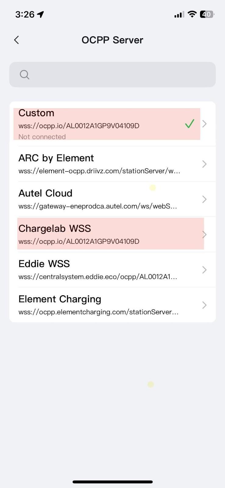 4. Configure OCPP servers in Autel Charge App
